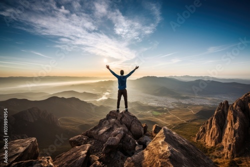 Happy man mountain portrait adventure.