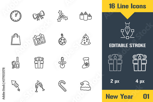 Happy New Year, Merry Christmas. Thin line icon - Outline flat vector illustration. Editable stroke pictogram. Premium quality graphics concept for web, logo, branding, ui, ux design, infographics.