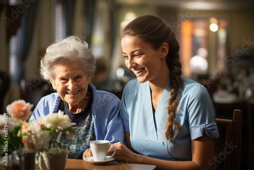 Happy senior in a nursing home, generative ai