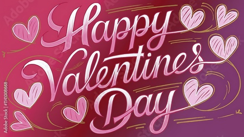 Happy Valentines Day greeting card. Calligraphic design for print cards, banner, poster Hand drawn text lettering for Valentines Day with hearts shape Vector illustration isolated on white background.
