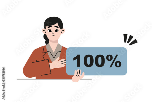Happy woman holding to-do list with checkboxes. To do list, done job, checklist, 100 percent. Flat vector illustration isolated on white background