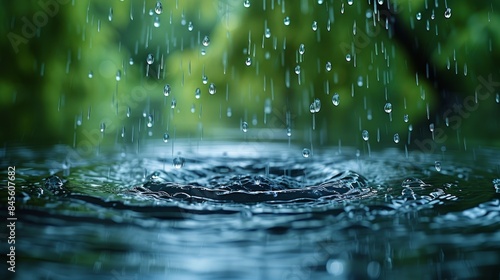 HD photography, close focus, rain, willow, large droplets of water rippling into the water,