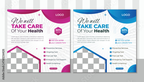 Healthcare or medical square social media post design templet for hospital clinic doctor and dentist marketing ads web banner template