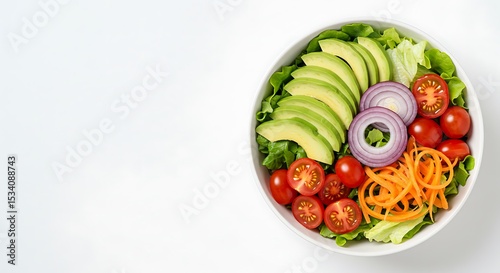 Healthy and Colorful Salad Bowl with Avocado, Tomatoes, and Vegetables