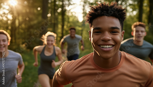 Healthy Black Hispanic Adults Running and Exercising, Sunlit Outdoors