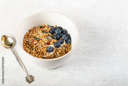 Healthy breakfast from quinoa granola