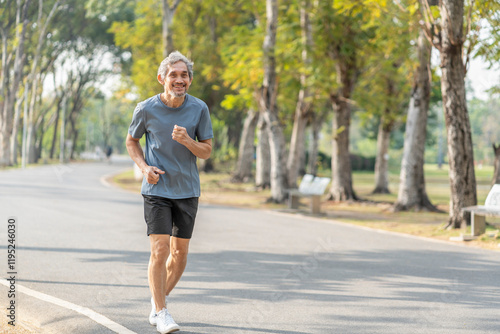 healthy senior man running in the park,older adult athlete in training