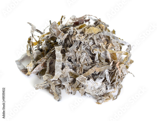 Heaps of dried kelp isolated on white background