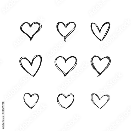 Heart doodles, linear illustration. Hand drawn love hearts.