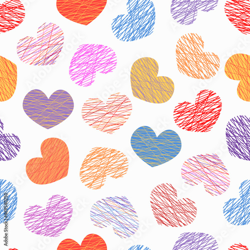 Hearts pattern. Seamless Valentine day background with colorful striped symbols of love. Vector creative illustration