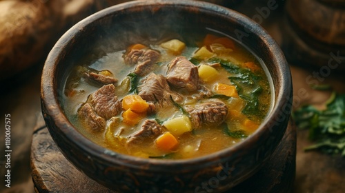 Hearty Beef and Vegetable Soup in a Rustic Bowl