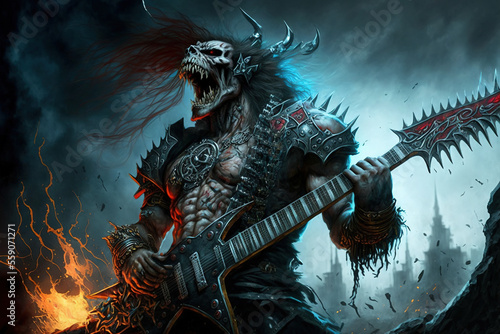 Heavy metal fantasy guitar player. AI
