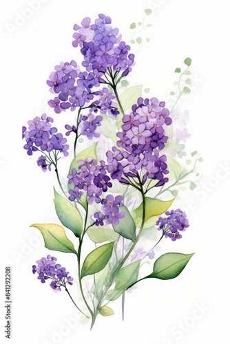 heliotrope themed frame or border for photos and text. fwith clusters of purple flowers. watercolor illustration, white color background.