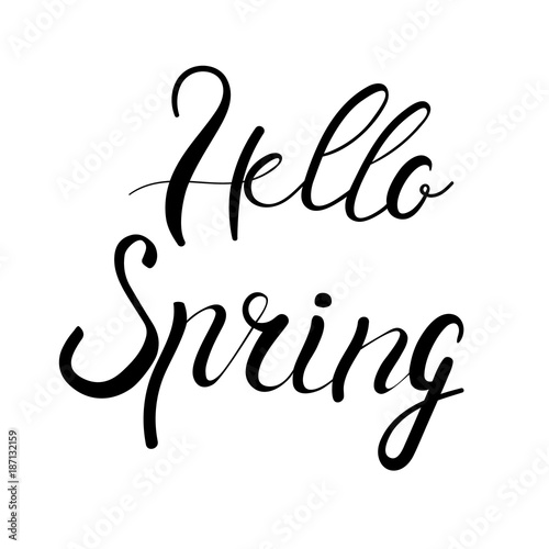 Hello spring lettering isolated on white hand written vector type. Calligraphy