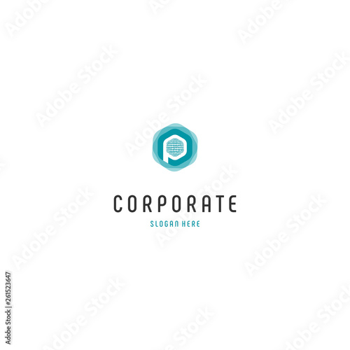 hexagonal line letter p logo icon, illustration Vector Logotype Template