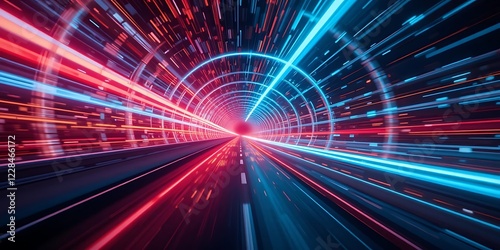 High Speed Travel Through Neon Lit Tunnel