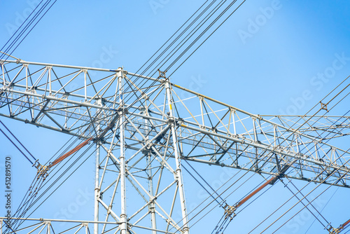 high voltage power pylon in a day time horizontal composition