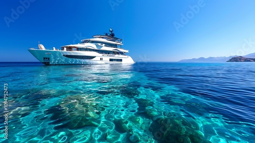High-end elegant transparent image of a luxury yacht on a clear blue sea, suitable for travel and leisure advertisements. 32k, full ultra HD, high resolution