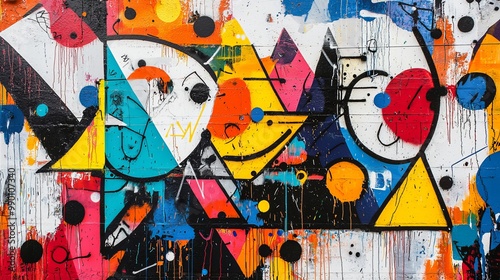 High-energy graffiti wall with dynamic shapes, splashes of color