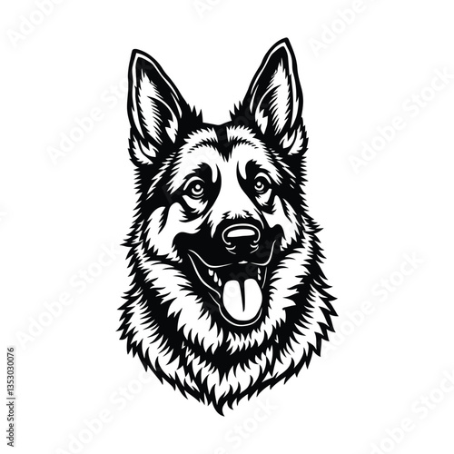 High-Quality German Shepherd Silhouette for T-Shirts and Tattoos, Stylized German Shepherd Dog Head Logo Design, Detailed Black and White German Shepherd Vector Illustration