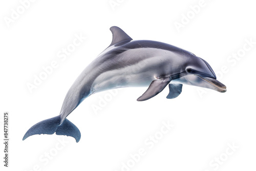 High-resolution image of a dolphin swimming gracefully in clear blue waters. Perfect for marine wildlife and ocean-themed projects.