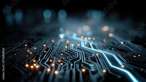 High-Tech Detailed Blue Circuit Background with Glowing Elements