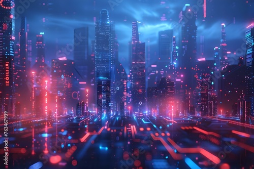 Hightech urban backdrop with advanced technology connectivity and quantum computer interface concept. Concept Urban Technology, Advanced Connectivity, Quantum Interface, Hightech Backdrop