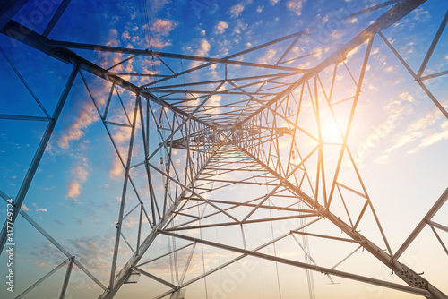 High-voltage tower sky background