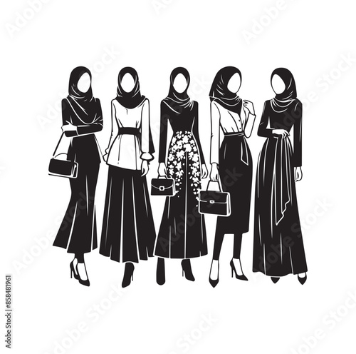 hijab style standing style vector illustration design silhouette