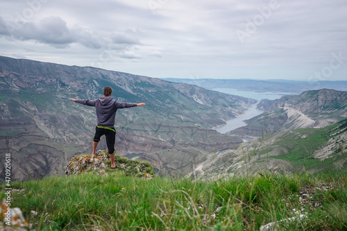 Hiker on top of a mountain in Sulak canyon