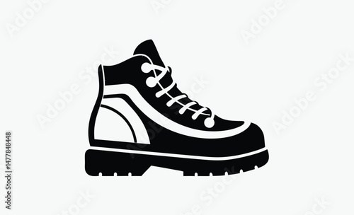 hiking boots silhouette, mountain shoes icon, black boot vector