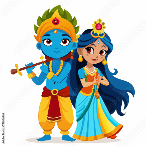 Hindu god Krishna with flute with Radha on an isolated white background
