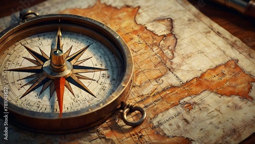 Historic Navigation Instruments on Antique Atlas : old compass on old map