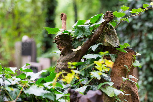 Historic Statue on the mystery old Prague Cemetery, Czech Republic