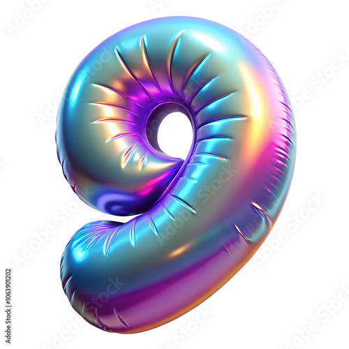 Holographic 3D balloon with number for birthday or new year celebration. Metallic foil balloon with iridescent silver color