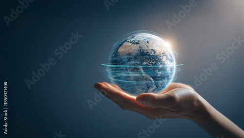 Holographic Earth Rotating Above Human Palm