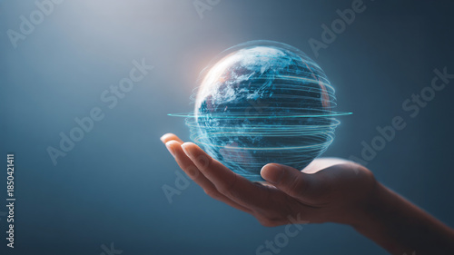 Holographic Earth Rotating Above Human Palm