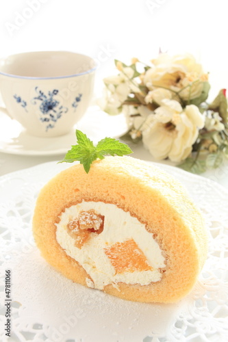home bakery, peach swiss roll