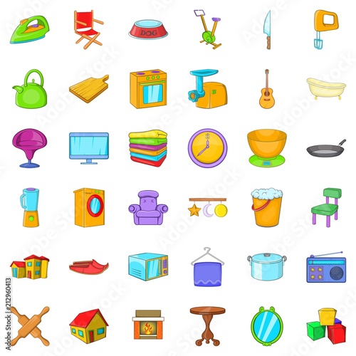 Home icons set. Cartoon style of 36 home vector icons for web isolated on white background