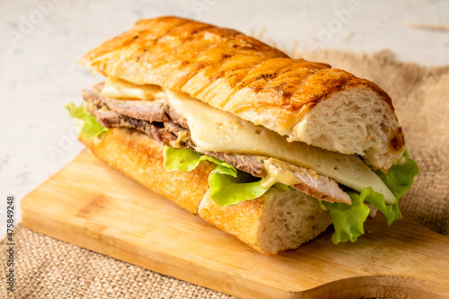Homemade pork cubanos sandwich close-up. Classic fast food.