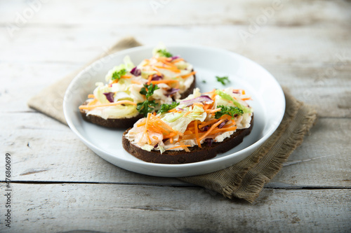 Homemade toast with cream cheese and vegetables