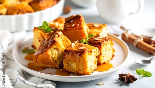 Honey Cake Squares on Plate.