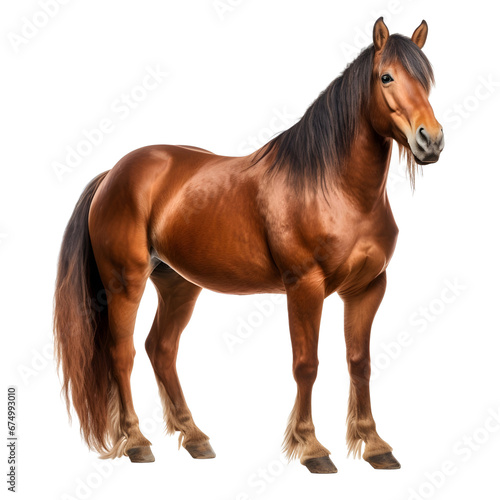 Horse with long mane standing and ready for riding isolated on transparent background