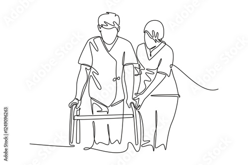 Hospital activity concept. Single line draw design vector graphic illustration.