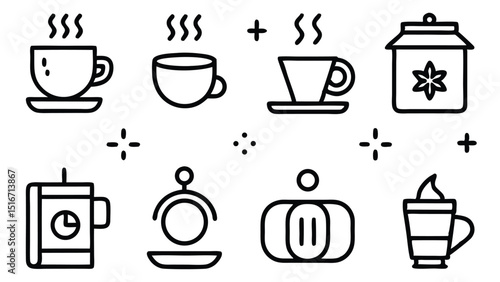Hot Beverage Icons Coffee, Tea, and More - Line Art Graphics