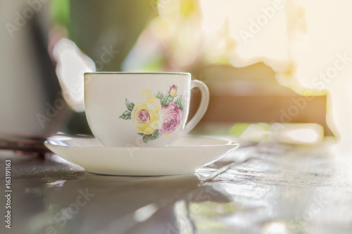 hot coffee on table for relaxing coffee time at home blur background