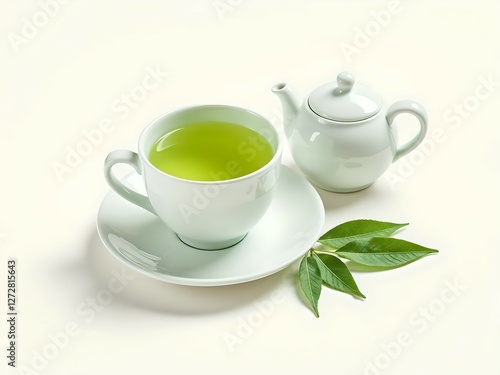 Hot Green Tea on Isolated White Surface