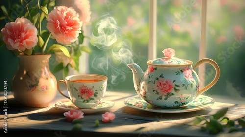 Hot tasty tea is served. Healthy drink. Relaxation.