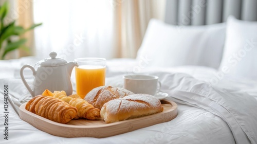 Hotel room service chaos breakfast in bed luxury hotel cozy environment morning viewpoint