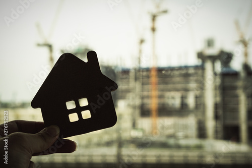 House model in home insurance broker agent ‘s hand or in salesman person. Real estate agent offer house, property insurance and security, affordable housing concepts